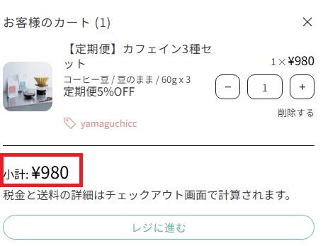 価格は、コーヒー豆180gで、初回980円でお試しできます。