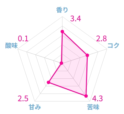 やや強めの苦味と優しい甘み、かすかな酸味のバランスがよく、クセがありません。