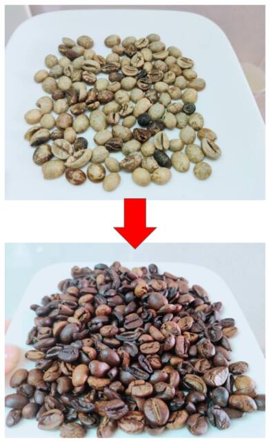 ご覧のとおり、ロブスタ種は生豆の状態でも黒い豆などの「欠点豆」が混じっていますが、ロブスタ種はきれいなことがわかります。