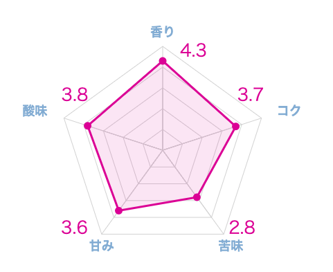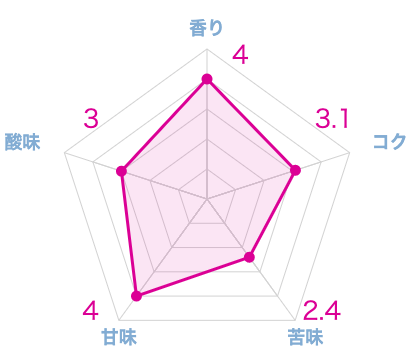 黒蜜のような濃厚な甘みとコクがあり、全体的に酸味が少ないので、オーソドックスなコーヒーが好きな人に向いています。