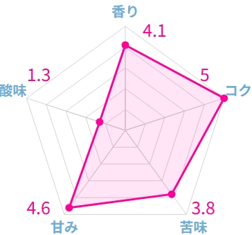公式ページに「チョコレートの甘さ」と書かれていますが、本当にチョコレートのような味がはっきりと感じられて、濃厚な甘みとコクが印象的でした。