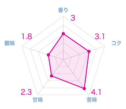 苦み一辺倒で甘みや酸味をほとんど感じさせない、硬派でワイルドな味わいです。