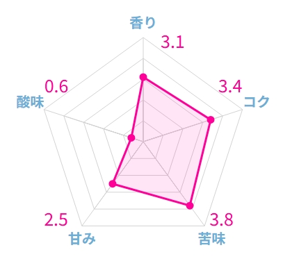 スモーキーなニュアンスは感じられますが、苦味もそこまで強くない。