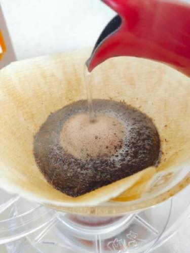 お湯をコーヒー粉に注いでいくと、ドーム状にフワッと膨らみ、コーヒー豆が新鮮であることを示しています。