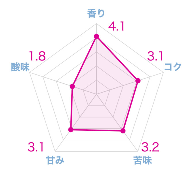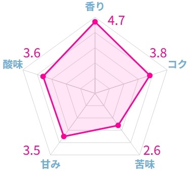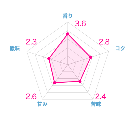 次に、甘みやコクの深さですが、これらは控えめで、口当たりはかなりあっさりした味わいでした。苦味と酸味のバランスについては、苦味はほとんどなく、酸味も控えめという結果でした。味わい全体が軽やかで、例えるならコーヒーというよりも紅茶を飲んでいるような感覚に近いです。