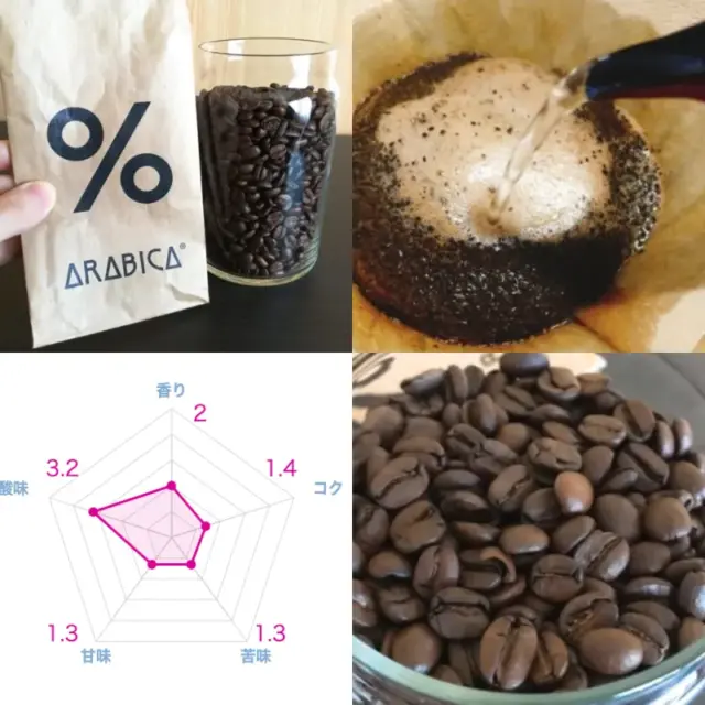 そんなアラビカ京都の代名詞「% ARABICA Blend」は、湯を注ぐと粉がドーム状に膨らみ、期待感とともにペーパードリップが進んでいきます。しかし実際に口に含んでみるとその質感は非常に軽やかで、コーヒーらしい力強い苦味や深いコクはほとんど感じられません。