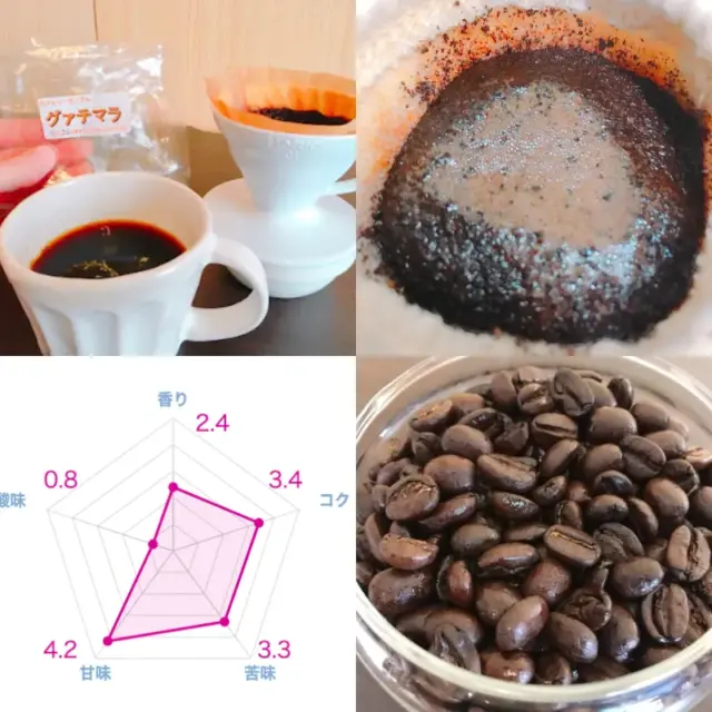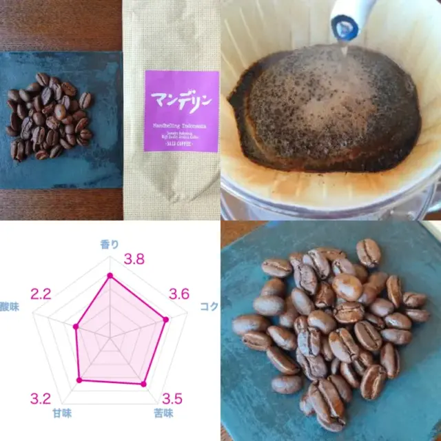 しかし、実際に口に含んでみると非常にさっぱりとした質感で、マンデリン特有の重厚さというよりは軽快な口当たりのコーヒーという印象を強く受けます。「あれ?これマンデリンじゃなかったっけ?」と思うほどです。苦味と酸味のバランスは整っており、どちらかが突出することなく調和しているため、後味までスッキリと飲みやすいです。