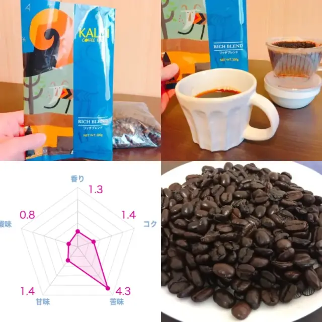 リッチブレンドを実際に口に含むとしっかりとした苦味が感じられ、その味わいの方向性は深煎りの定番商品であるマンデリンフレンチに近い強さを持っています。