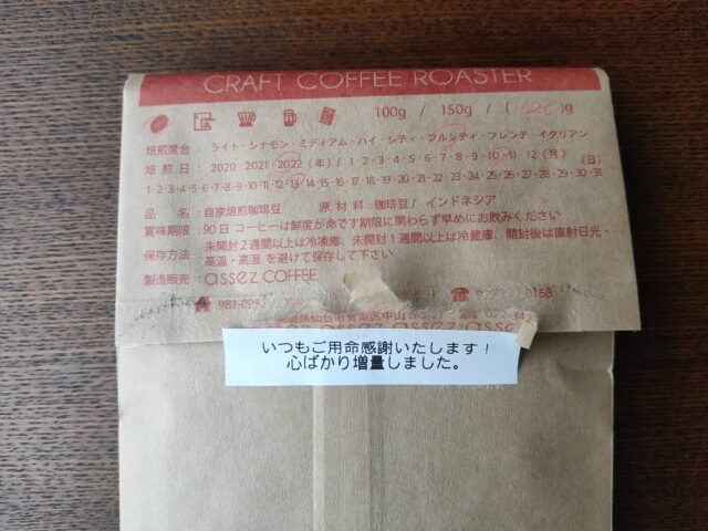 今回のコーヒー豆は、そのグループ店舗の「大和屋 加賀店」が焙煎、販売しているもので、Amazonの販売ページでは「香りに絶対の自信あり」「もう他の珈琲は飲めない」と、だいぶオーバーな表現をしています。