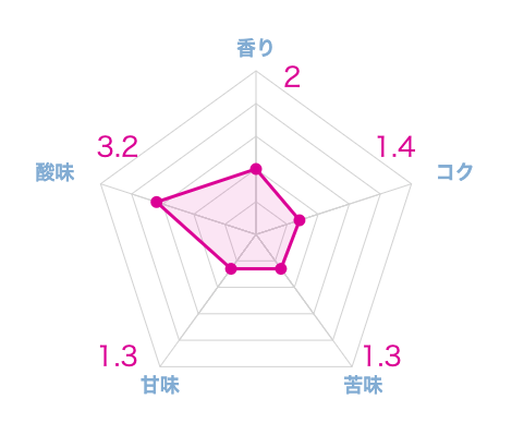酸味については一定の存在感があるものの、果実を思わせるような華やかさや際立った個性はなく、あくまで標準的な範囲に留まっています。味わいの核となる甘みや素材本来の旨みも全体的に乏しいため、総じてあっさりとした物足りなさが残る仕上がりです。