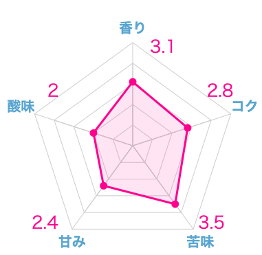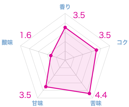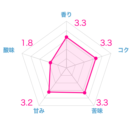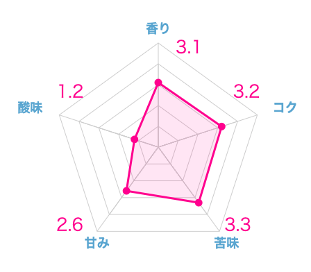 グラフの通り、苦みに振り切ったような味わいですが、非常にパンチ力があります。ブラックで飲むのはロースト感が強すぎてきついですが、カフェオレ用のコーヒーとしてはアリなコーヒー豆です。