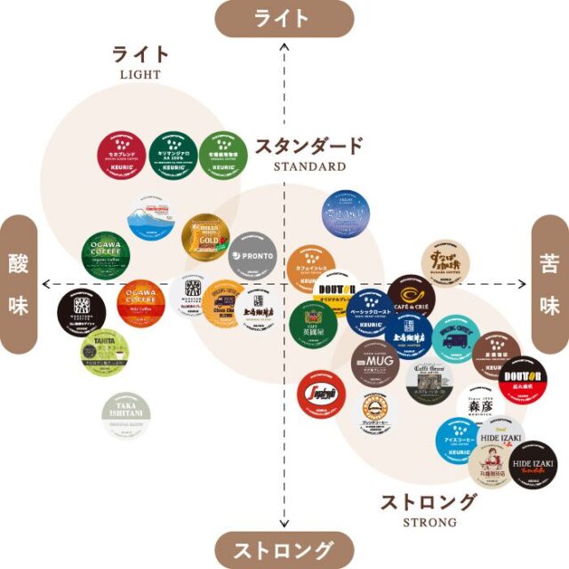 まずは、キューリグカプセル全44種類を一覧表にまとめたので紹介します。