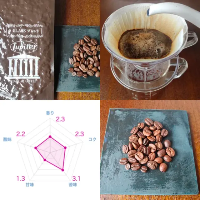 コーヒー豆に関しては手に入れやすい値段と、多様なラインナップが特徴です。主力商品のS-Classブレンドは、苦みと酸味のバランスを考えてブレンドされていて、豆の粒も意外なほど均一にそろっていますし、味も普段使いとして普通に楽しめる良さがあります。