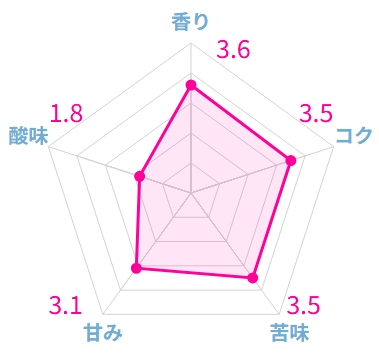 中煎り寄りの浅煎りですが酸っぱさを感じず、非常に飲みやすいです。甘みやうま味が凝縮されたような印象で、ふくよかな味わいです。