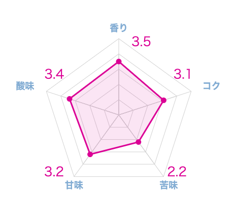 香りを嗅いだ時は酸味が強いイメージを持ったものの、酸味に負けない甘みがあり、良い意味で裏切られた気分です。