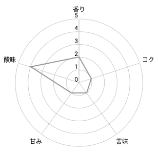 酸味がかなり強く、苦味やコクはほとんど感じません。好みがはっきり分かれそうな味わいかなと思います。