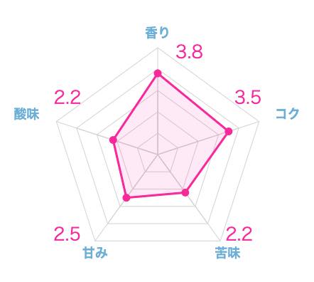 グラフの通り、苦みに振り切ったような味わいですが、非常にパンチ力があります。ブラックで飲むのはきついですが、カフェオレ用のコーヒーとしては十分アリなコーヒー豆です。