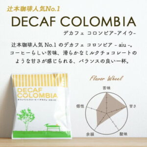 同店で一番人気の「デカフェ コロンビア」は、味のバランスが良く飲みやすく、丁寧に焙煎することで深みのある味わいを引き出しています。カフェイン除去には 「マウンテンウォータープロセス」 という方法(きれいな山の水を使ってカフェインを抜く方法)を採用しています。