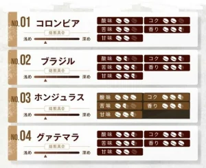 どれも焙煎度合いが浅めで、ほどほどに酸味があるので、さわやかなコーヒーが好きな人におすすめします。