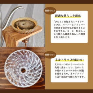 セットには、ハンドドリップ専用に作られた天然のオリーブウッド製スタンドも付属。スタンドを使うことでコーヒーを淹れる動作が安定し、見た目も美しく、家でもカフェのような体験ができます。