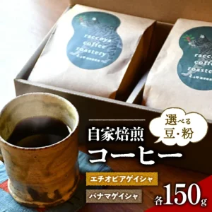 世界で一番高価なコーヒーと言われるパナマ産のゲイシャコーヒー150g、エチオピア産のゲイシャ150gがセットになった返礼品です。